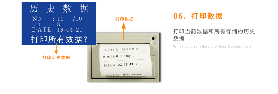 可打印當(dāng)前數(shù)據(jù)及所有存儲(chǔ)的歷史數(shù)據(jù);