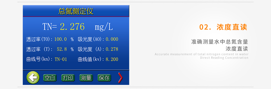 準(zhǔn)確測定水中總氮含量,濃度直讀;