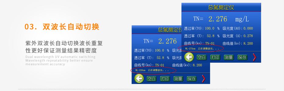 紫外雙波長自動切換,波長重復(fù)性更好,保證測量結(jié)果精密度;